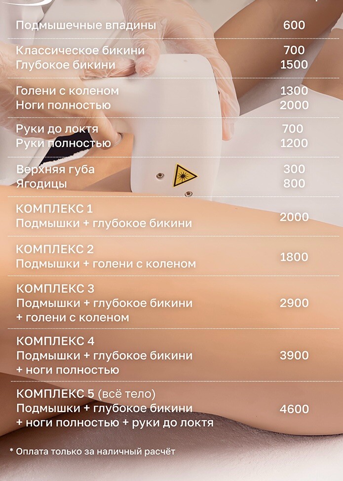 - КОМПЛЕКС 5. (все тело) подмышки + глубокое бикини + ноги полностью + руки до локтя i